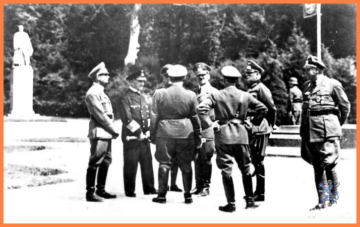 Rudolf Hess, Hermann Göring, Von Ribbentrop, ministre des Affaires étrangéres du Reich, l'amiral Raeder, chef de la Kriegsmarine, et le général von Brauchitsch, commandant de la Wehrmacht.